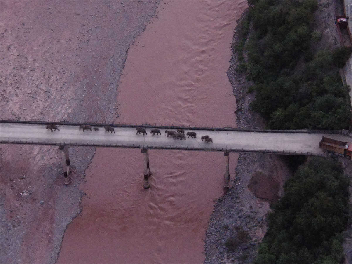 2021年8月8日20时零8分,14头北移亚洲象安全过桥渡过元江干流继续南返。