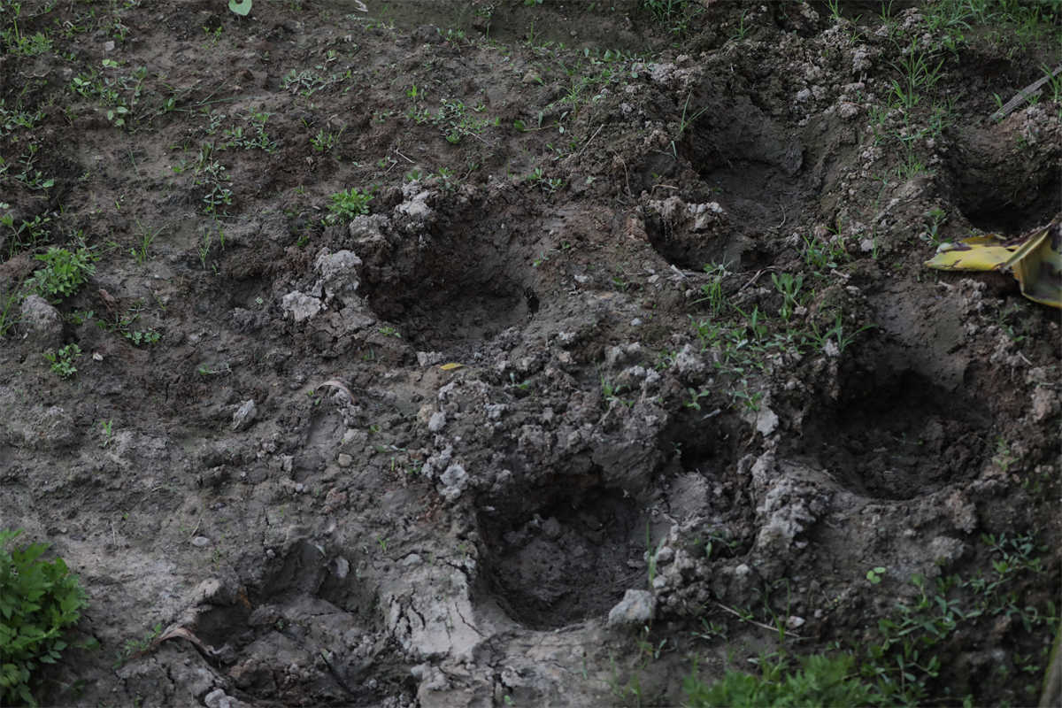 田地中的野象脚印。