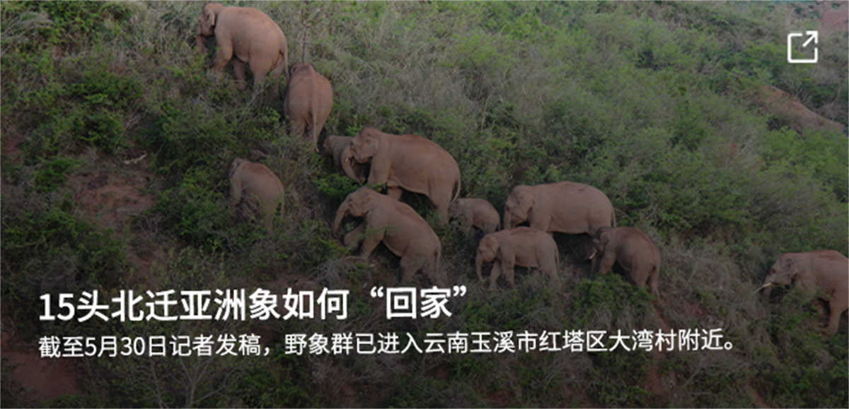 到6月底,除了离群的独象在晋宁区持续逗留外,14头亚洲象组成的象群被成功引导回玉溪市易门县。但让它们再往南走,并不容易。