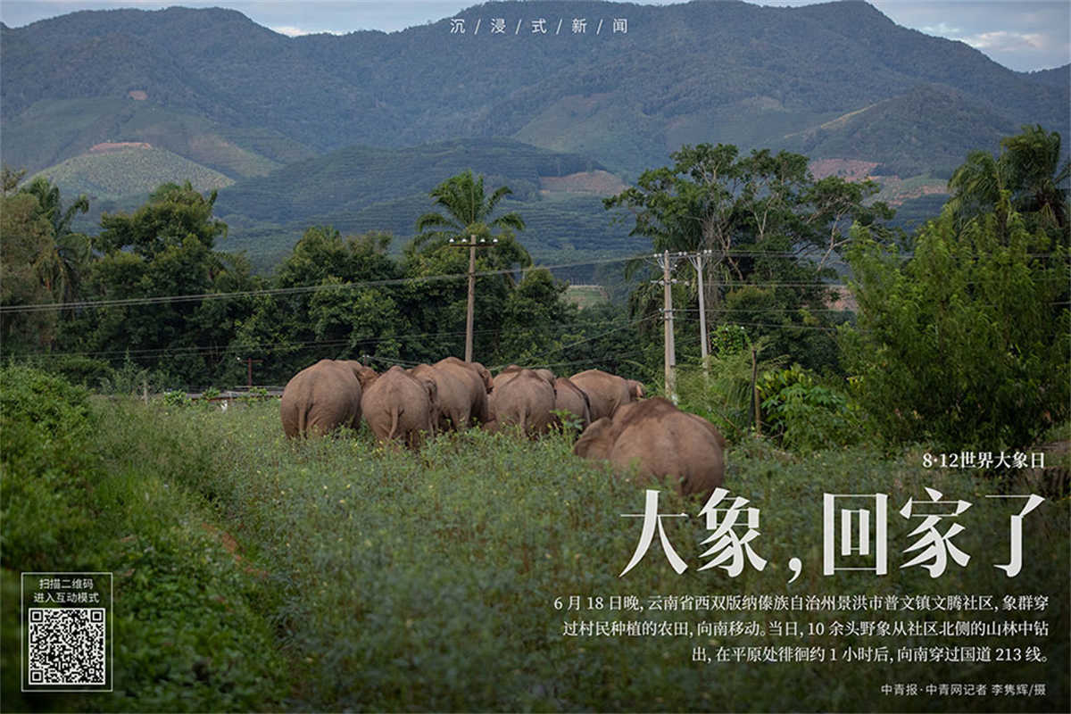 2021年8月12日是第10个世界大象日。离开栖息地、向北迁移17个月的亚洲象“短鼻家族”在人类的帮助下,越来越接近它们原本生活的家园——云南西双版纳国家级自然保护区。