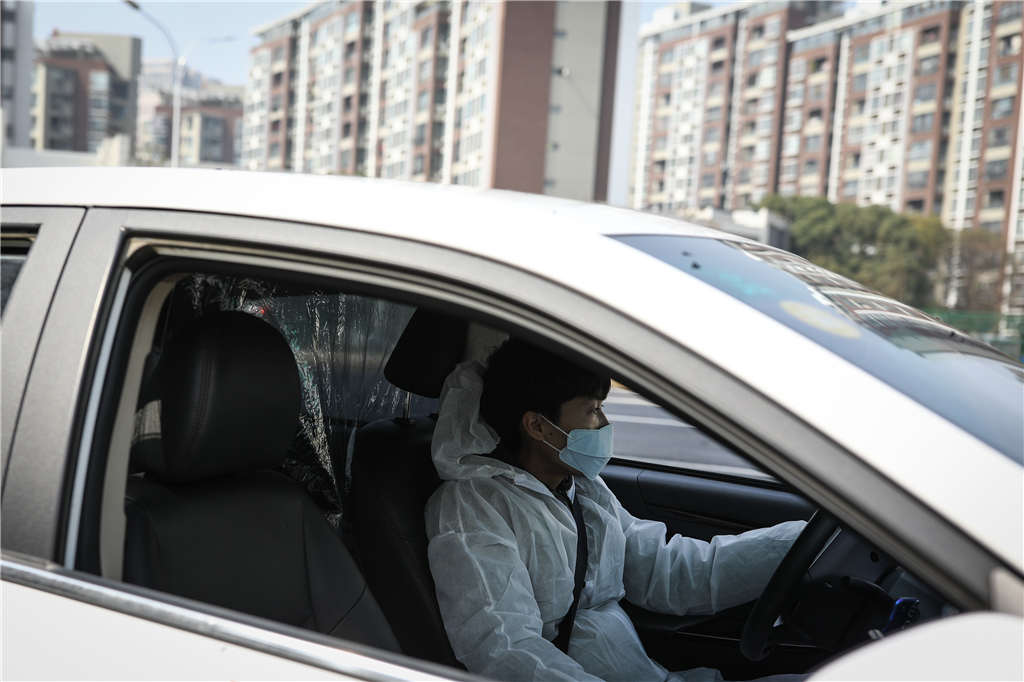 王利成了其中一员。她的车里前后排加装了防护隔离膜,“虽然有点简陋,但能有效防止飞沫”。每位乘客下车后,她都会进行消毒。