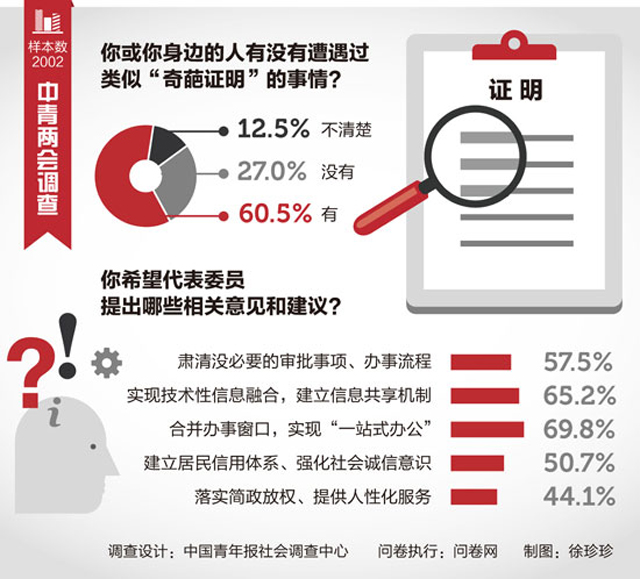60.5%的受访者及身边人曾遭遇过“奇葩证明”